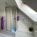 Dit 1-badkamer appartement biedt een zitruimte die zijn ingericht met een bank en een bureau, samen met moderne voorzieningen zoals een flatscreen TV met satellietzenders. De veiligheidsvoorzieningen op de kamer bestaan uit rookmelders. Grosse Unterkunft Mit Eigenem Bad Mit Dusche In Der Nahe Von Hamburg heeft 1 slaapkamer. 1 badkamer met een apart toilet en een douche, evenals een haardroger en handdoeken wordt aangeboden.